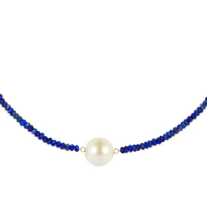 This Lapis Pearl Necklace is an exclusive piece you can only find online! It features AAA 3MM Lapis Gemstones and AA Round Freshwater Pearls, all set in 14K Gold Filled Metal. The necklace is 15-17” long, making it the perfect length for any outfit.
