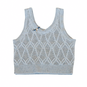 The Joie Ocean Blue Cashmere Set is an ideal choice for a luxurious outfit. Crafted with a soft light grey blue cashmere cardigan and tank, it features exquisite Labradorite sliced buttons. For the finishing touch, this set includes pins with pearls, gold chain, and charms on denim blue and silver leather. Ensure sophistication and style with this stellar set.